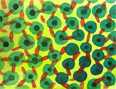 "green cellular structure", Aquarell auf Papier,