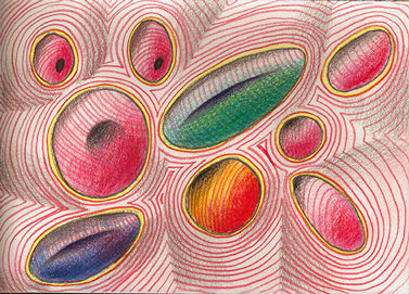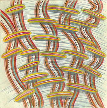 "dancing snakes", Farbstiftzeichnung auf Papier,