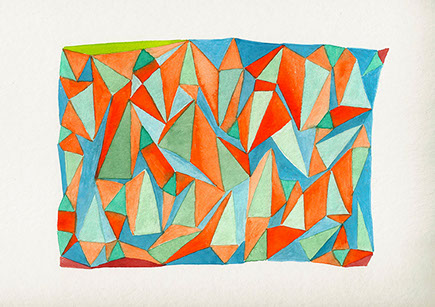 "blue orange triangles", Aquarell auf Papier,