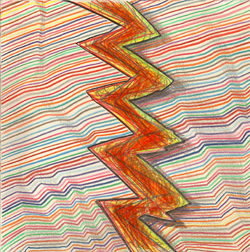 "flash", Farbstiftzeichnung auf Papier, 20 x 20 cm , ©matthias hennig 2013