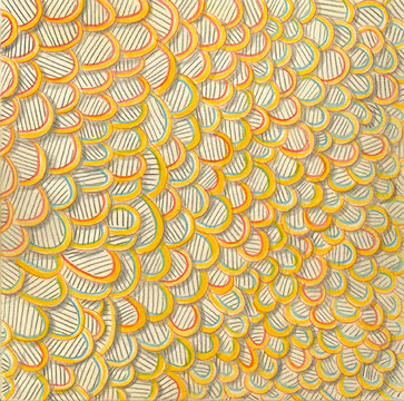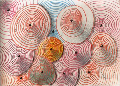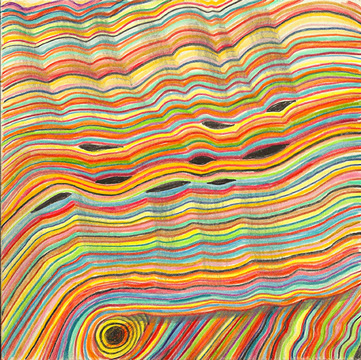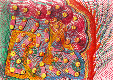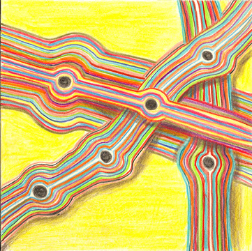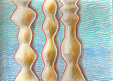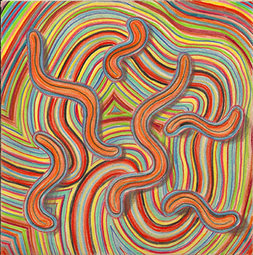 "dancing snakes", Farbstiftzeichnung auf Papier,