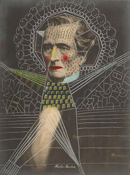 "Puccini" , Farbstiftzeichnung auf Fotodruck, 15 x 20 cm, ©matthias hennig 2013