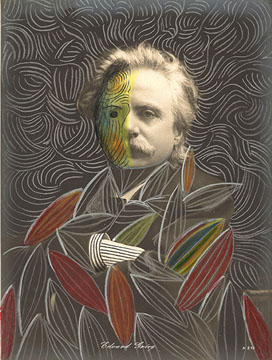 "Edward Grieg" , Farbstiftzeichnung auf Fotodruck, 15 x 20 cm, ©matthias hennig 2013