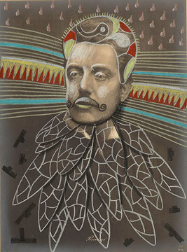 "Paderewski" , Farbstiftzeichnung auf Fotodruck, 15 x 20 cm, ©matthias hennig 2013